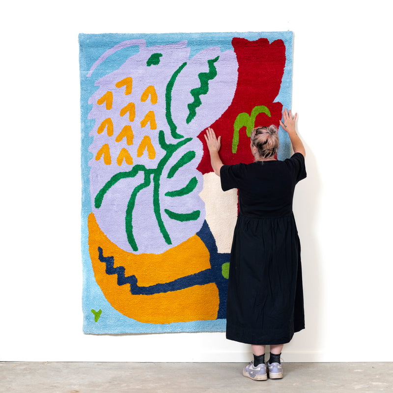 "I mainly look to the natural world for visual inspiration - harmony and balance in both volume and colour also play a large role in my works. I find rug tufting to be similar to painting, the biggest difference is that with tufting you work in reverse as tufting is done from the back of the canvas.